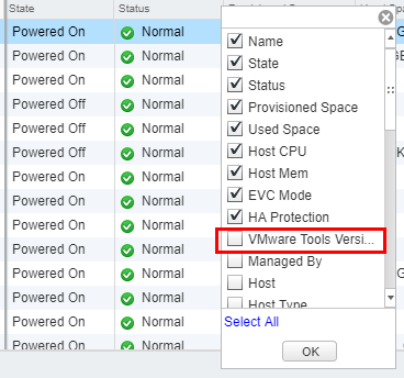 After clicking the Show/Hide Columns option, choose theย VMware Tools Version Status checkbox.