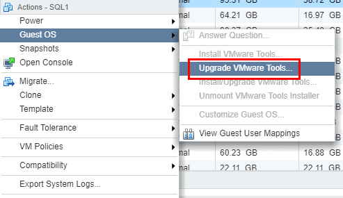 To upgrade any virtual machine VMware Tools version, simply right-click on the VM, selectย Guest OS >> Upgrade VMware Tools option.