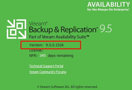 After running the update, verify the Veeam Backup and Replication console shows the current Update 3 version which is 9.5.0.1536.