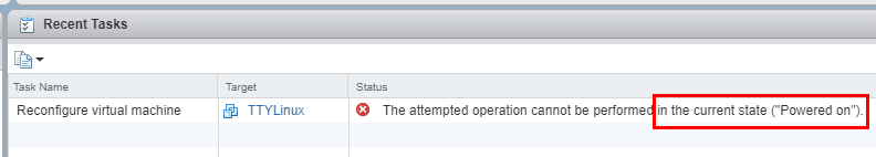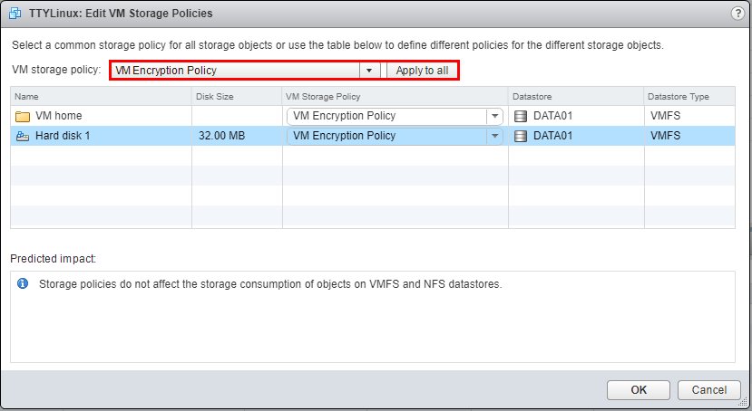 Note that if the virtual machine is powered on, we can’t set the encryption policy.