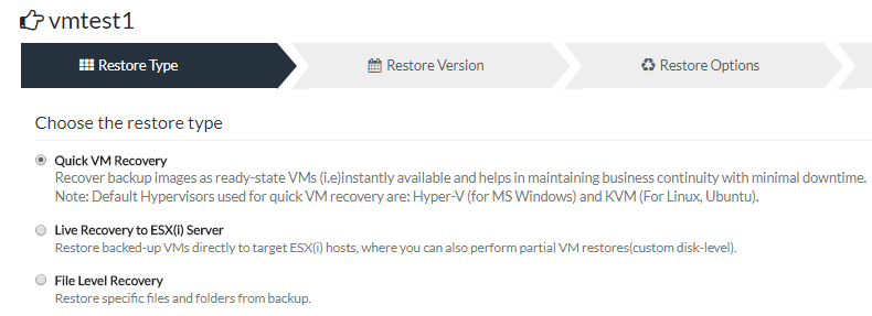 With this release, you can now quick recover both Hyper-V and Windows Server backup jobs onto a VMware ESXi host. Quick VM Recovery allows administrators to boot the virtual machine directly from the backup repository basically eliminating the time it takes to first restore the virtual machine and then boot. Having the new option increases the flexibility that one has to meet RTO objectives.