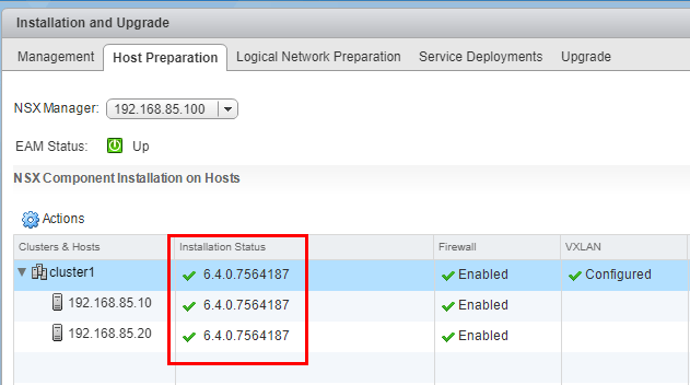 Now, we see the cluster/hosts correctly reflect the new VMware NSX 6.4 version.