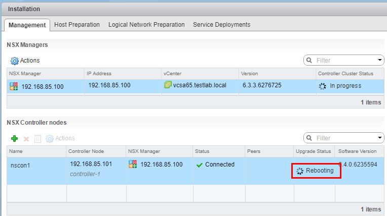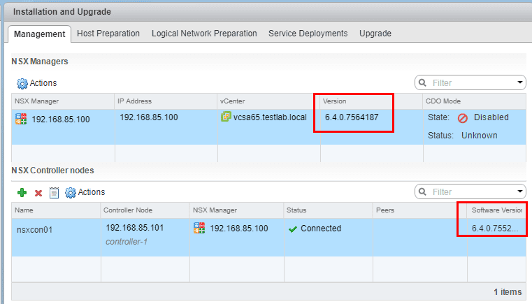 Now, we see both the NSX Manager and the Controller nodes correctly displaying the new 6.4 version.