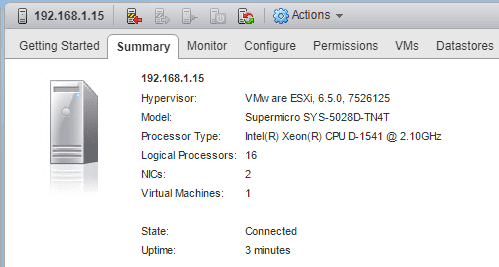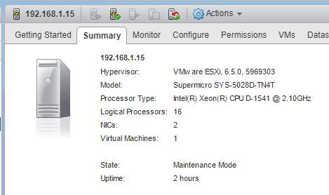 - ESXi 6.5 Update 1 – version 5969303 (beginning test)