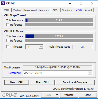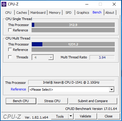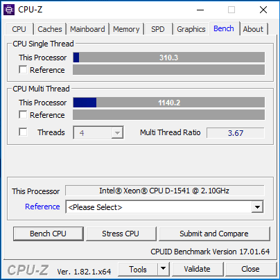 Just as a quick test of CPU and disk performance, I am using CPU-Z for a quick CPU benchmark and Crystal Disk Benchmark for disk benchmark statistics.