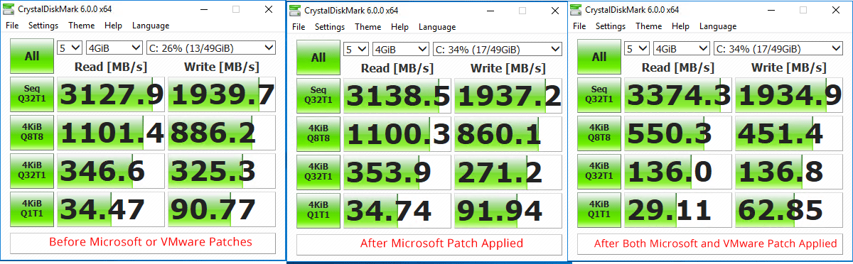 After a restart of the operating system, the following are the benchmark results after applying the guest operating system patch:
