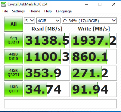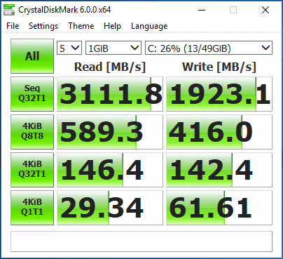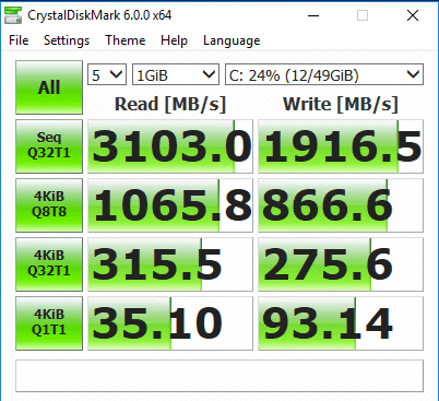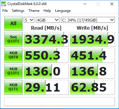 The numbers above, while not wildly different are lower aside from the Seq Q32T1 bench on the read side. The other numbers are lower especially on the write side.