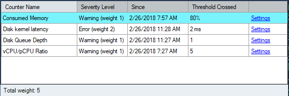 If you click theย Stress Level it will allow drilling down into the condition to see the elements that are causing the threshold to present with the alerted stress level.ย After clicking on a server with aย High stress level, the below conditions were displayed.