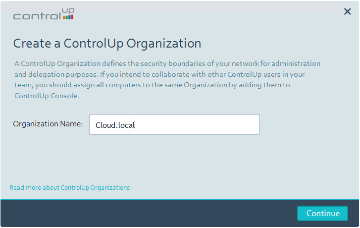After activating the software, choose a ControlUp Organization name for the installation.