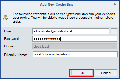 Add the credentials to connect to vCenter Server so you can start gathering information from vCenter on clusters, hosts, and virtual machines.