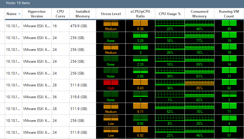 Below we can seeย Stress Level conditions being presented on various hosts.