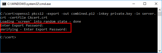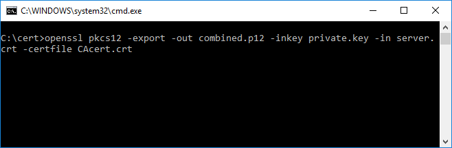 After installation, use OpenSSL to combine the server certificate, CA certificate, and private key into a single file. We can do that with a simple one liner.