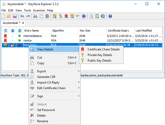 Download the Keystore File and Open with Keystore Explorer