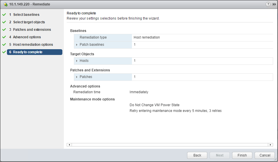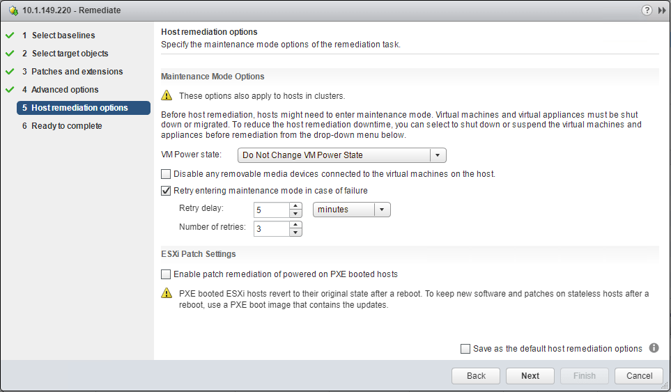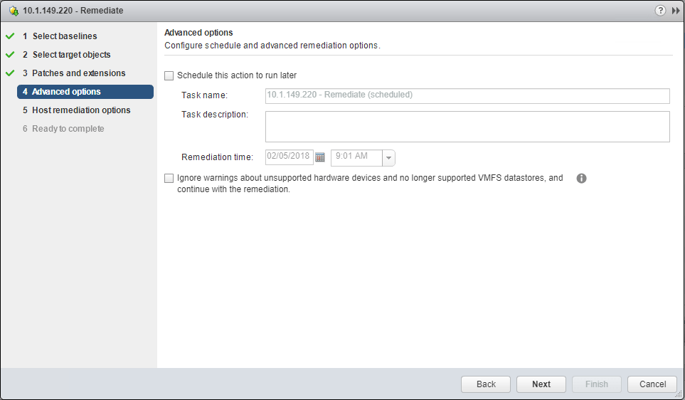Select you host remediation options.
