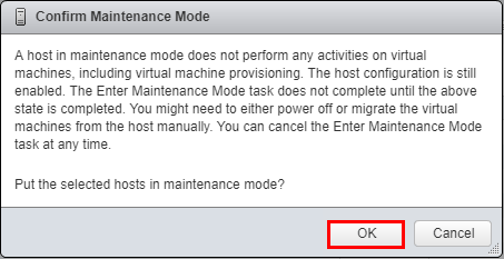 Here we confirm the action of placing the witness host in maintenance mode.