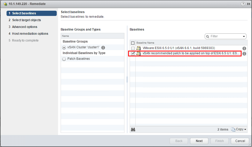 Selecting the vSAN Witness host in the update manager wizard to apply the needed patch.