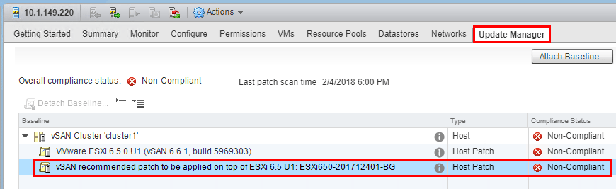 Using update manager, scanning the Witness host shows the needed missing patch.