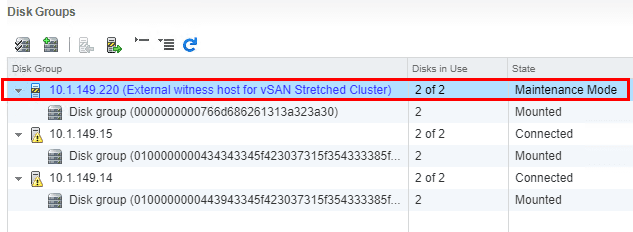 Now, we should see the vSAN Witness host in maintenance mode.