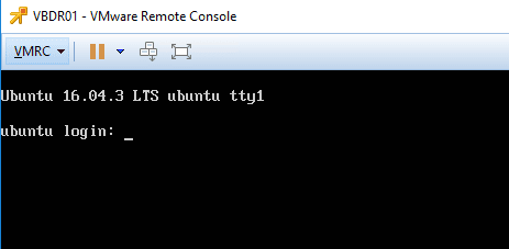 After deploying the Vembu BDR Suite v3.9 Virtual Appliance, boot up the VM.ย As you can see, is based on an Ubuntu 16.04 LTS installation.