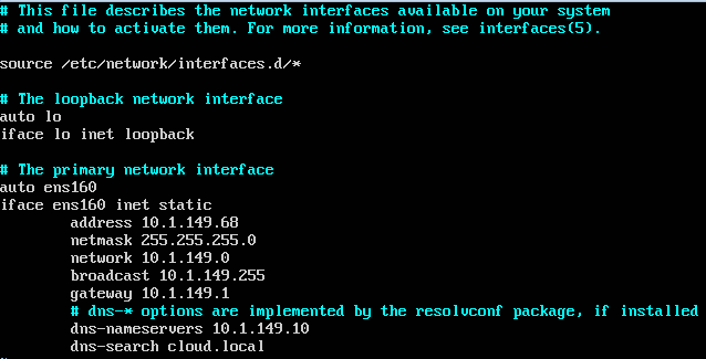 At the console, we need to edit the network configuration using the following: