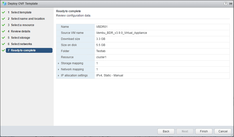 The Vembu BDR Suite v3.9 Virtual Appliance is a simple and intuitive OVF template deployment that happens via the normal means of template deployment in vCenter.ย The following is a bit of general information regarding the virtual appliance: