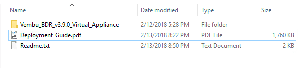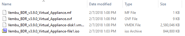 The Vembu BDR Suite v3.9 Virtual appliance contains the following (4) files that are required for deployment: