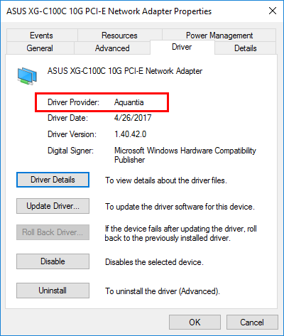 Interestingly, the driver isย Aquantia.ย The Asus card chip is based on theย ย Aquantia AQtion AQC107 controller.