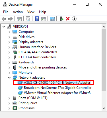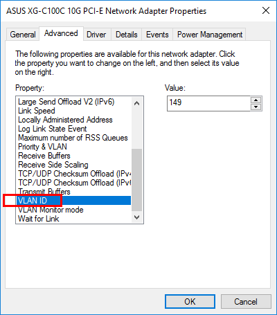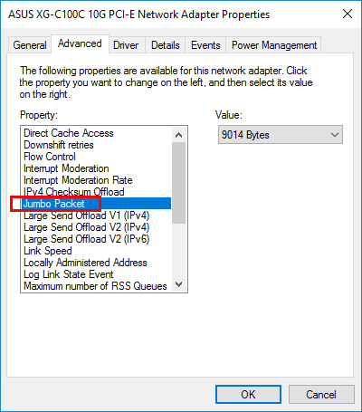 Asus XG-C100C 10G NIC Windows Server 2016 VLANs Jumbo Frames