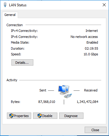 As you can see below, the card links up in Windows Server 2016 as aย 10.0 Gbps connection.