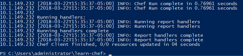 Chef is a great tool to automate in guest operations and perform configuration management, desired state configuration, and alleviating configuration drift.ย It is especially fun to play around with in a home lab environment to automate virtual machines that you are quickly provisioning and tearing down.ย In the next Chef post, we will take a look at more advanced configuration tasks and management using Chef.