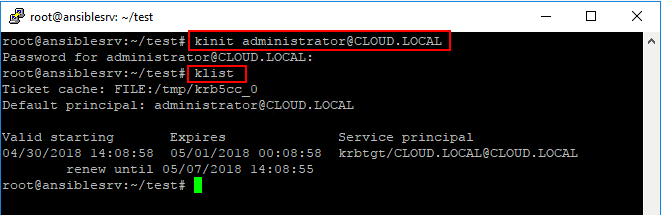 There area couple of really simple commands that we run on our Ansible box to both get a Kerberos ticket and also list our Kerberos ticket to know we have received one:
