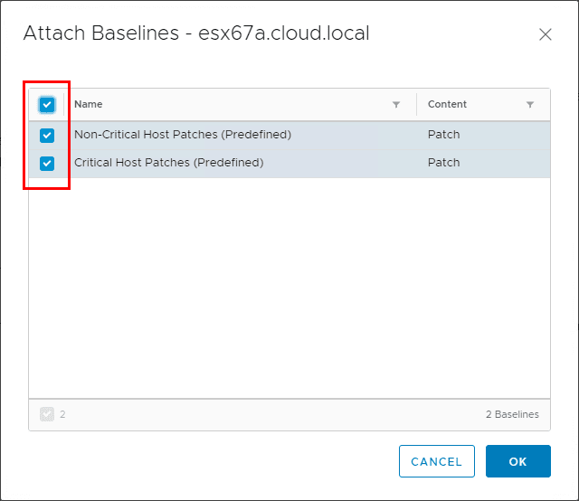 Attaching the default Non-Critical Host Patches and the Critical Host Patches to an ESXi 6.7 host.
