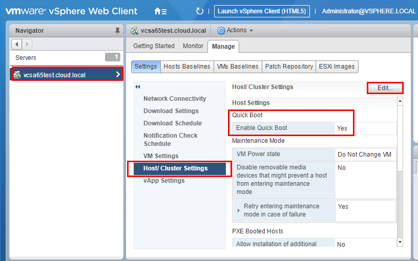 Configuring VMware ESXi 6.7 Quick Boot and HTML5 vSphere Update Manager VUM are great new features found in vSphere 6.7. The more I dive into this release, the more excited I become. There is just so much new functionality and features that allow administrators to be more effective and efficient in carrying out tasks in their vSphere environments. The new Quick Boot feature will greatly reduce the time it takes to patch and upgrade hosts. Also, the HTML5 vSphere Update Manager functionality included with this release definitely helps to close the gap on things that were missing from the previous HTML5 experience prior to vSphere 6.7.
