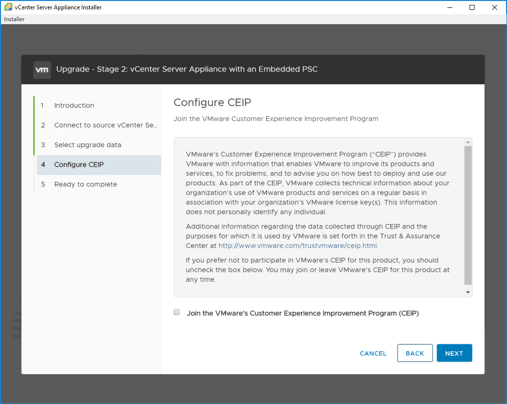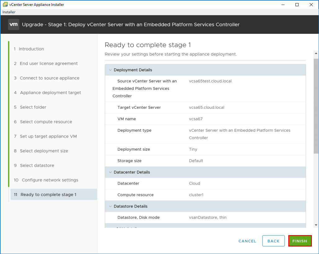 Once you have carefully went over the upgrade plan, and have decided to perform your upgrades in the proper order and have then made it to the vCenter Server VCSA 6.7 Upgrade step, let’s take a look at what upgrading a VCSA 6.5 appliance to 6.7 looks like.