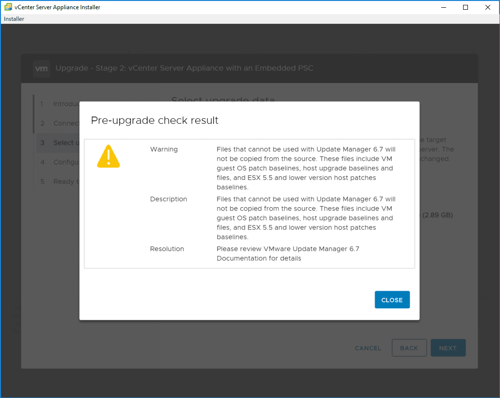 VMware has our backs here, pre-upgrade checks will check the environment to make sure everything is at least verified to work as expected.