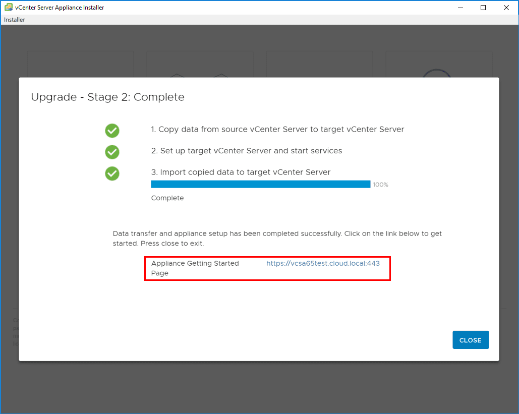 Conveniently, the link to the new VCSA 6.7 appliance web client is linked from the Stage 2 Complete screen at the bottom.
