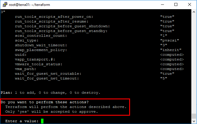 Now, let’s actually run this. Below, I am running the terraform apply command. You will have to type yes to answer the “Do you want to perform these actions?” question.
