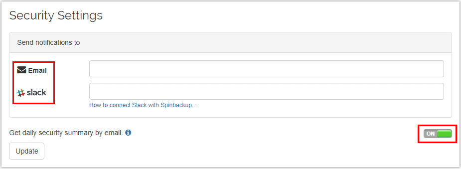 Notifications can play a key role in security event visibility.ย Spinbackup’s new Aggregated Security Reports feature allows G Suite administrators to have the ability to receive a security events digest email that daily identifies the noted cybersecurity events in the G Suite environment.ย The email contains links to the relevant Spinbackup modules so that G Suite administrators can quickly review the information directly from the Spinbackup console.