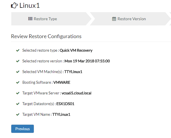 Permanent recovery is the more typical recovery scenario that might be thought of. Permanent recovery is also known as full VM recovery. This type of recovery restores the full virtual machine along with all persistent data that may be created after Instant Recovery. Permanent recovery can take quite a bit longer than Instant Recovery depending on the amount of data that needs to be restored. Vembu utilizes several performance enhancing features that drastically speed up the permanent recovery process including Direct SAN and Hot-add.