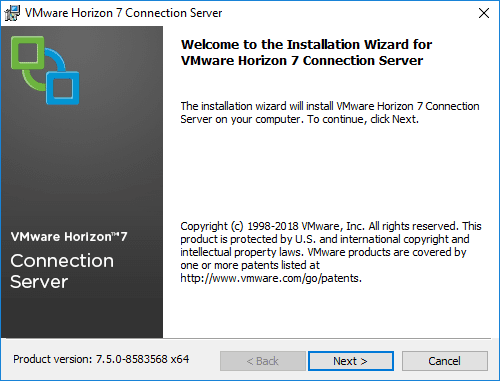 The install has everything it needs to begin installing VMware Horizon 7.5 Connection Server.