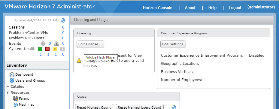 Logins to the Horizon 7.5 Connection Server will have to be authorized. On theย Initial Horizon 7 Administrators screen, select the local Administrators group option or enter the name of a domain user or group that will be initially allowed to login and granted full administrative rights.ย Below, in the home lab, I am simply allowing a domain administrator.ย In production, you will most likely want to setup Horizon specific groups.