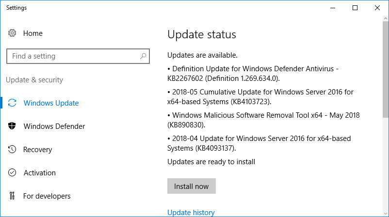For the purposes of Installing VMware Horizon 7.5 Connection Server, in this lab, I am using a Windows Server 2016 guest operating system.ย First things first, whichever supported Windows Server operating system you choose as the platform for Horizon 7.5, make sure you have it fully patched.