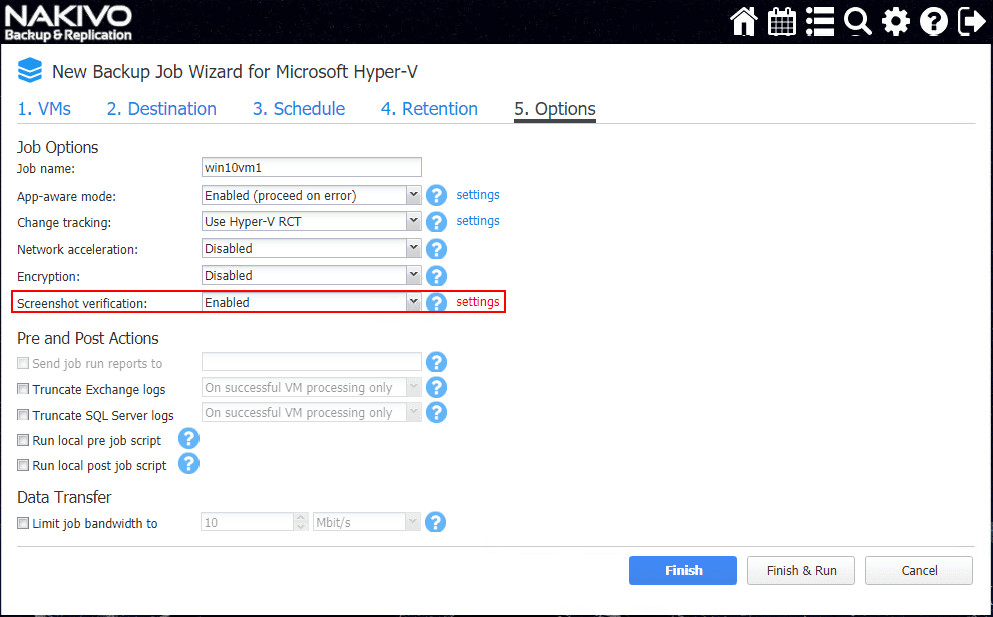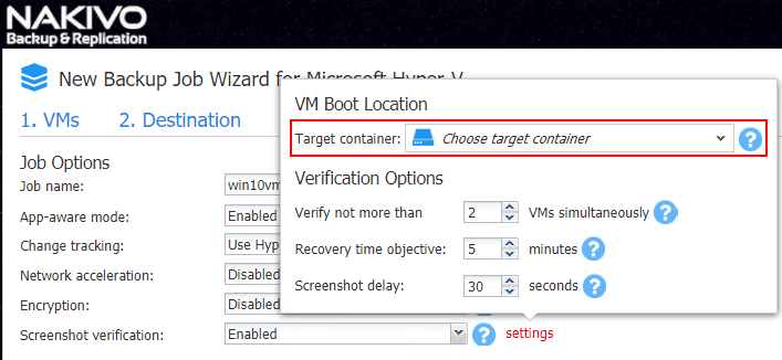 Verify Hyper-V Backups with NAKIVO Backup and Replication v7.4 Screenshot Verification