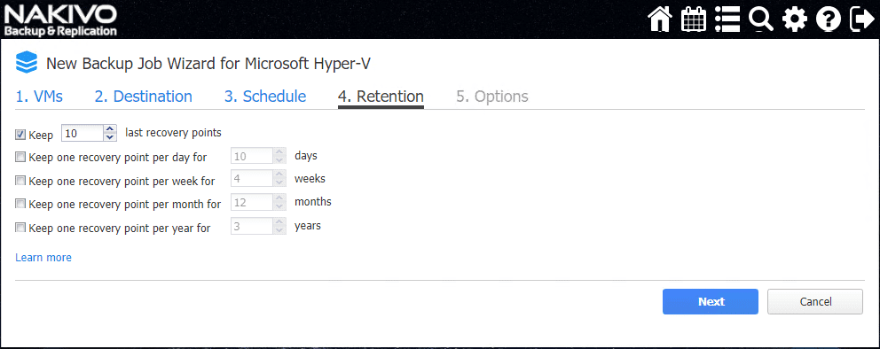 Retention determines the number of recovery points you want to keep before these are pruned off.