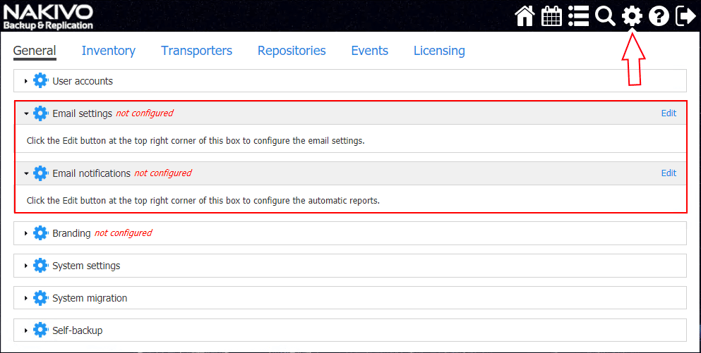 - Configure email connectivity from NAKIVO Backup & Replication to an SMTP server