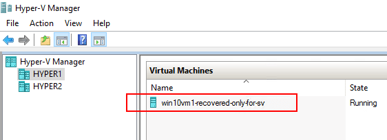 While monitoring the Hyper-V environment, you will see the temporary VM that is created in the target container environment if specified.ย Note the name below: