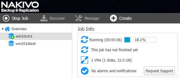 Click toย Finish orย Finish and Run at the end of the wizard to save the job and run it.ย Below, we have kicked off the newly created backup job containing the screenshot verification process enabled.