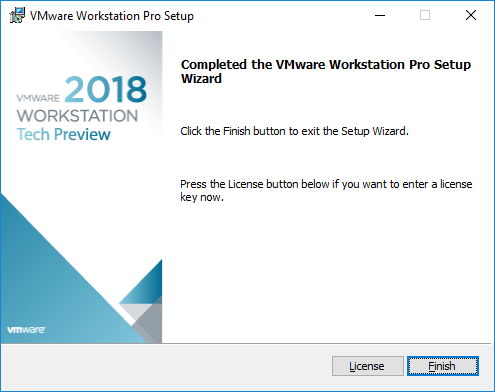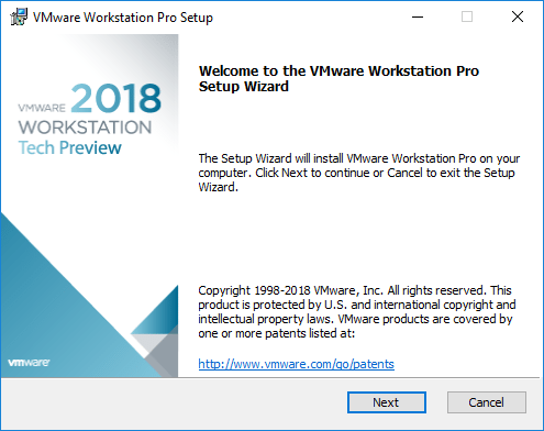 Beginning the VMware Workstation Pro Tech Preview 2018 installation process.