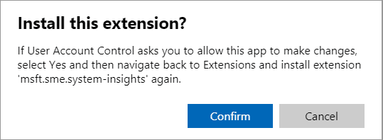 Confirm the installation of System Insights into Windows Admin Center.