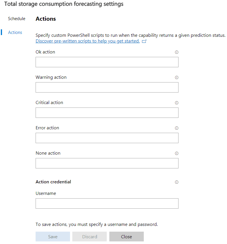 The true power of the System Insights extension is realized when you look at theย Actions section of the settings area.ย You can setup PowerShell scripts to execute when certain prediction statuses are encountered and returned.ย There is a great resource ofย pre-written PowerShellย scripts to get started with enabling this functionality here: